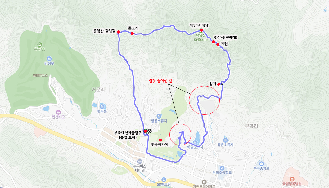 같은 코스 따라 걷기 : 이곳(폐암자 이후 지도 따라 걷지 말고 도로를 따라 이동하거나 둘레길을 따라 걷는 걸 추천)
