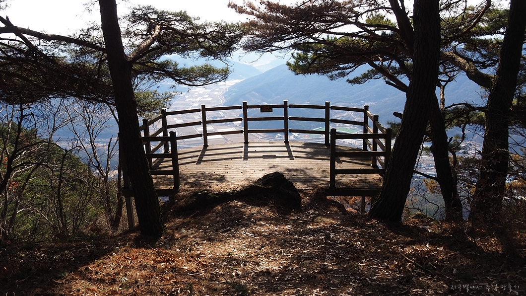 정 동쪽이 밀양시가지 방향인데 그러면 앞에 보이는 봉우리가 밀양의 종남산이 아닐까 합니다.