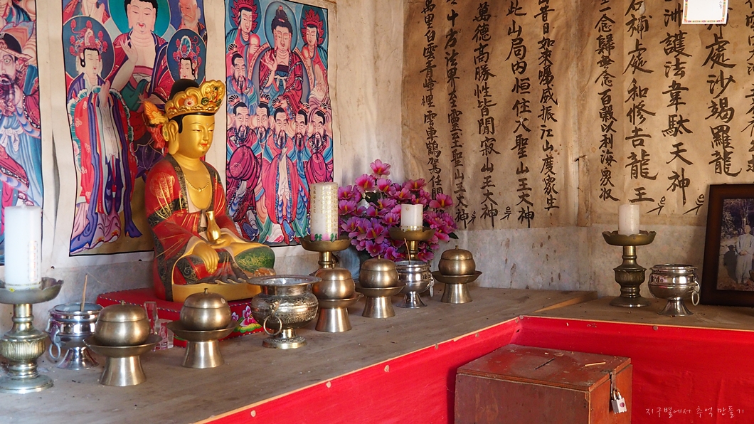 끈으로 묶여있는 법당 문을 살짝 열어보니 부처님 혼자 외로이..