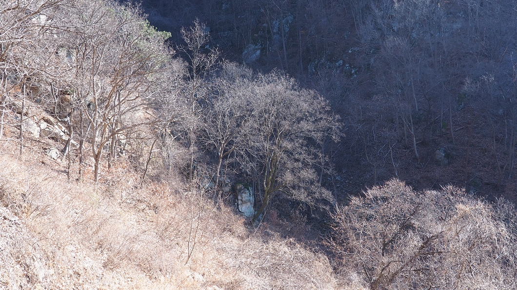 정상 가까이에서 이런 동굴을 여러 개 만납니다.