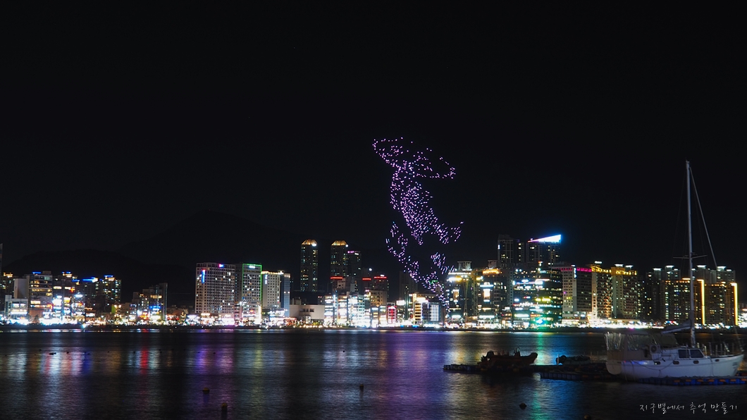 산을 내려와서 광안리에 도착을 하니 드론쇼가 진행되고 있습니다.