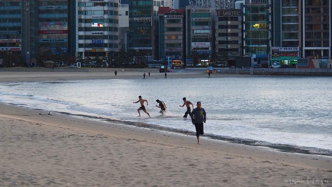 광안리해수욕장 일출을 기다리고 있는데 이런 멋진 청춘들이 있네요.