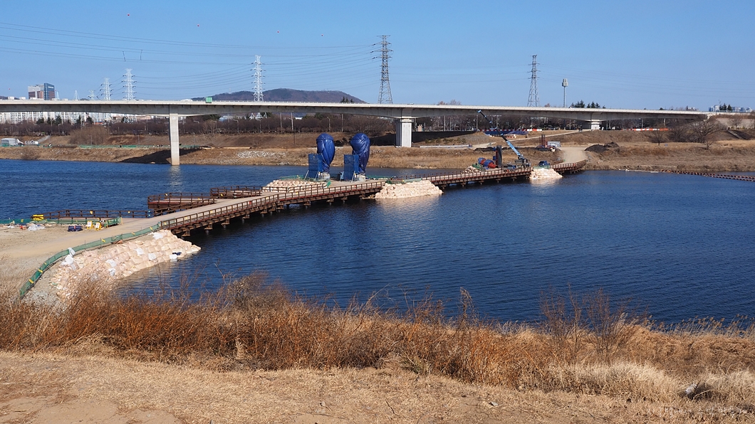 강을 가로지르고 있는 강정보가 보이네요.