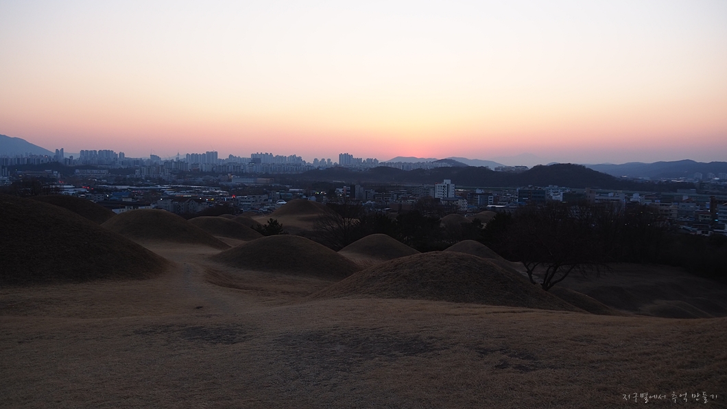 일몰 되기 전 도심과 어우러지는 고분군의 파노라마 풍경.
