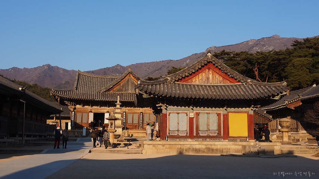 이 대웅전 건물과 아래 사진의 금강계단이 상로전이라고 하여 국보로 지정이 되어 있답니다.