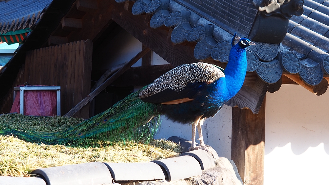 식당 앞에는 공작새 한 마리가 왔다 갔다 하면서 무료 모델로 자태를 뽐내고 있네요.
