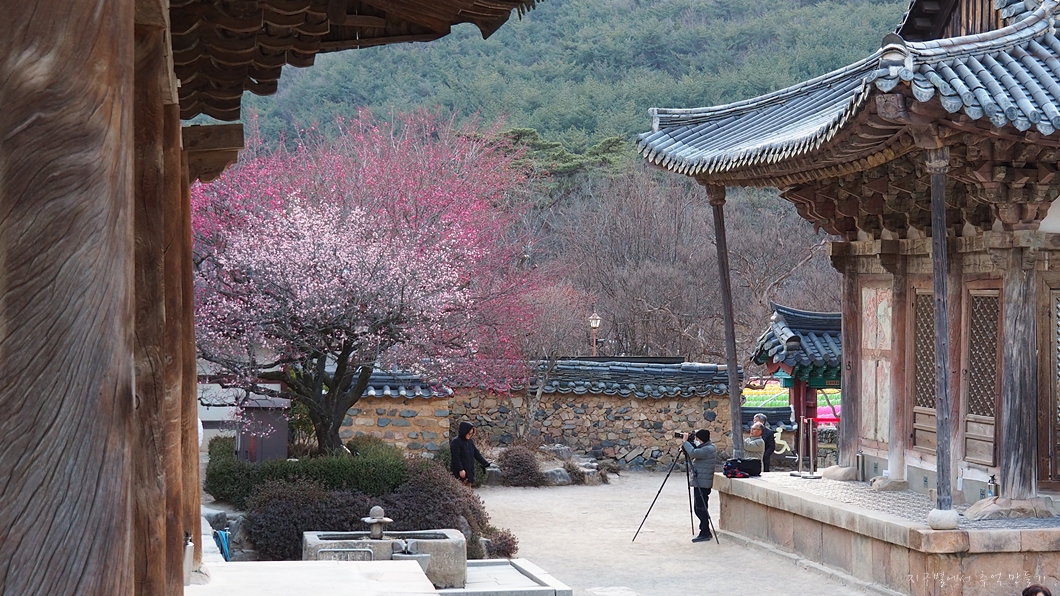 극락전 옆에 백매와 홍매 두 그루가 있고 영각 앞에 그 유명한 자장매가 있는데 극락전 앞은 조금 덜 피었지만 영각 앞은 오늘 현재 완전 만개입니다.