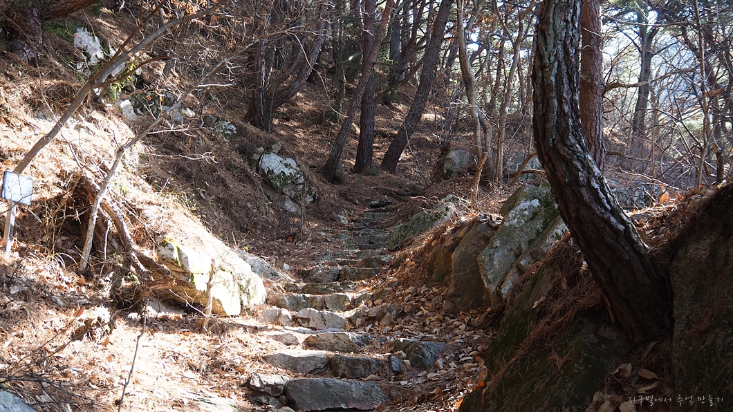거의 전 구간에 소나무들이 많은데 이런 곳에서는 복식으로 숨을 크게 들이마시면서 걷는 게 좋구요.