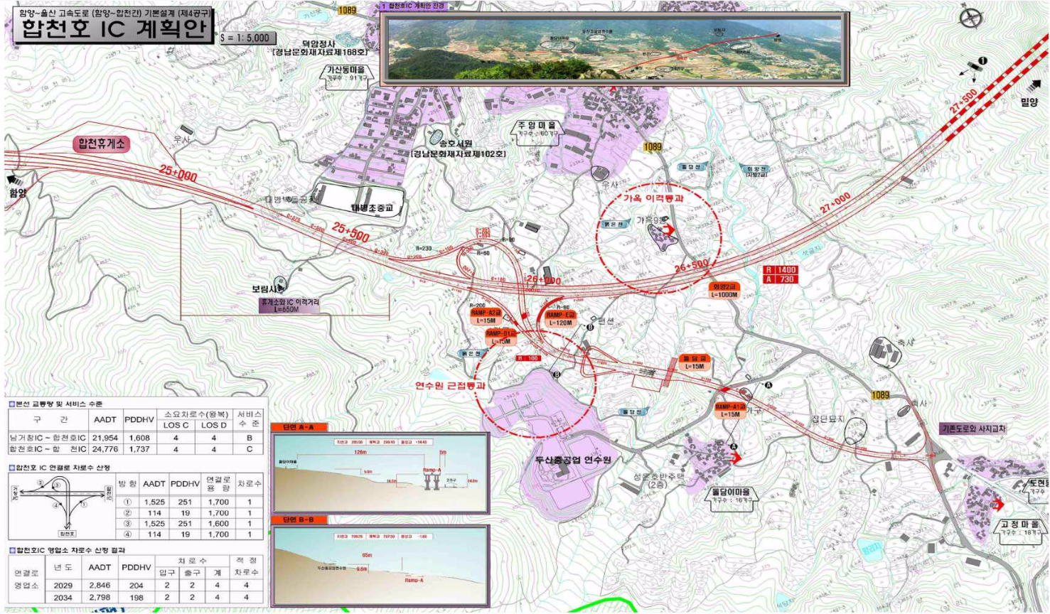 이건 합천호 IC 인근의 고속도로 공사 도면입니다.