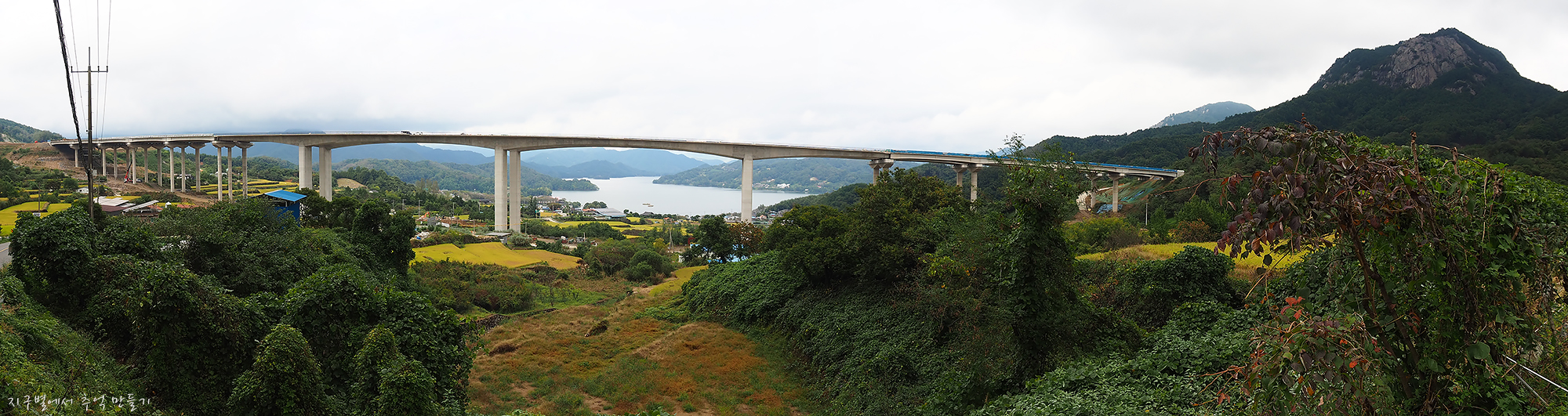 그중 금성산에서 합천호 IC 사이에는 길이 1,000m 정도의 교량이 건설 중인데 산행으로 이곳 지나다니면서 사진을 한 장씩 찍다 보니 이게 모여서 이곳 다리 공사하는 장면의 전체 모습을 거의 담게 되었네요.