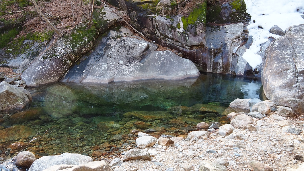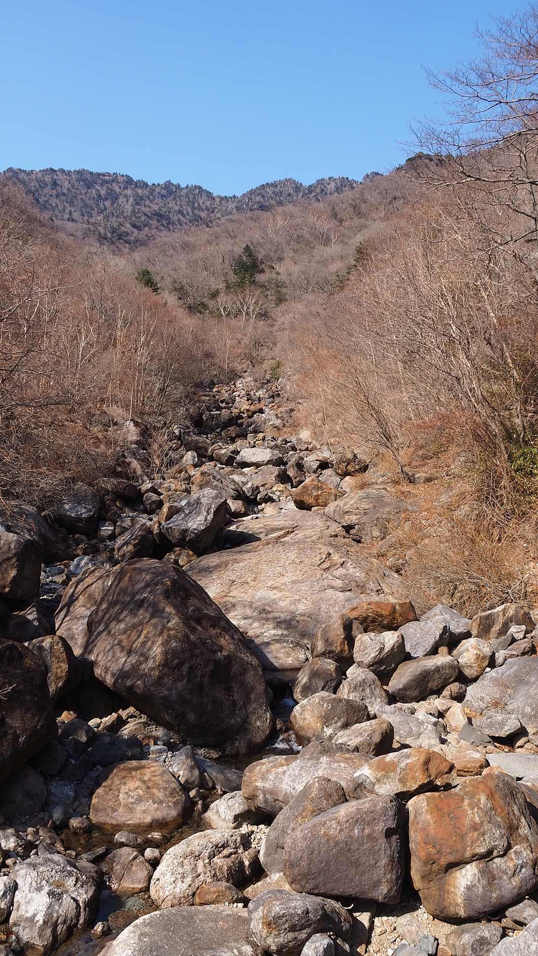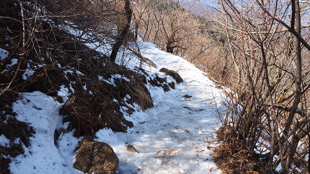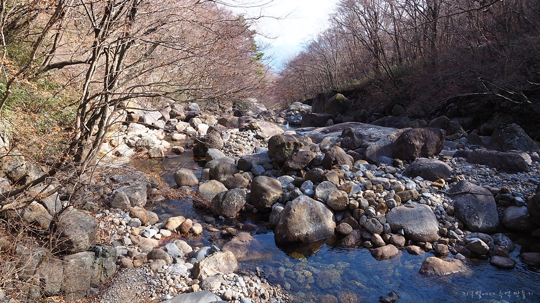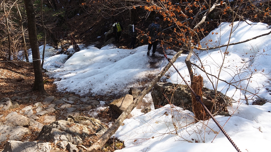 계곡이 거대한 빙판으로 덮여있지만 내려가는 데는 크게 무리가 없네요.