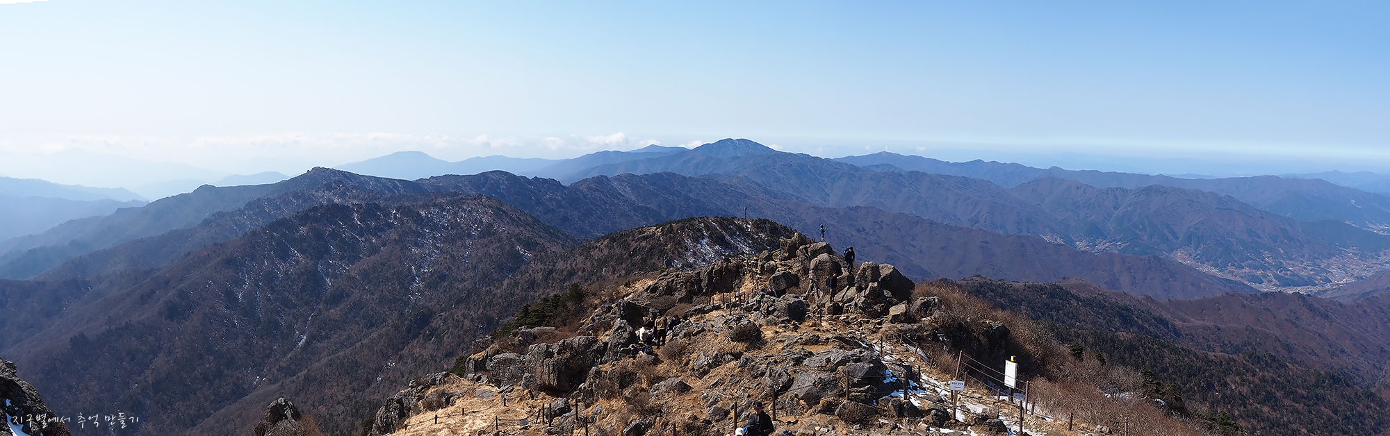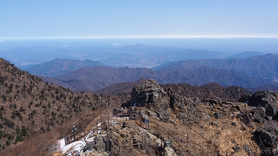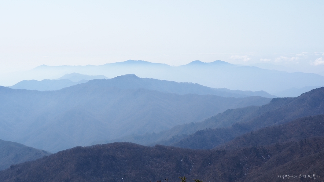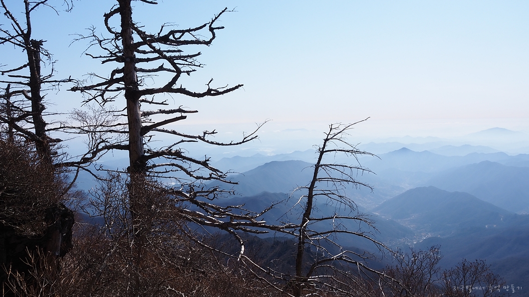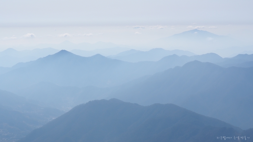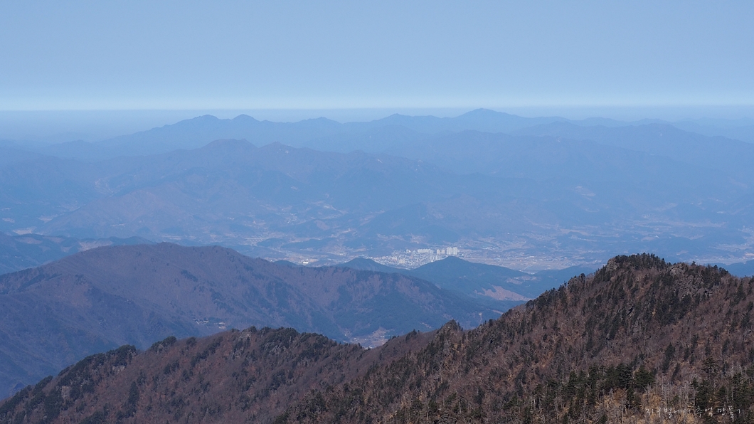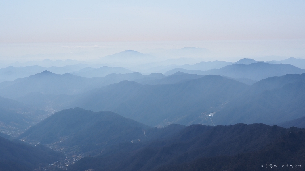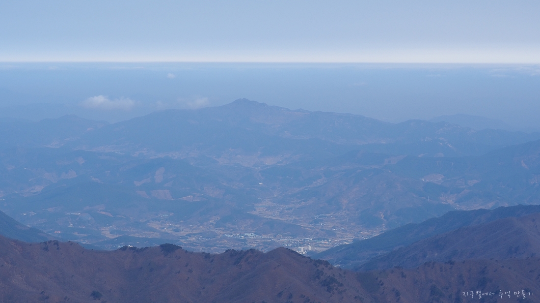 좌측 덕유능선은 잘 보이는데 미세먼지층이 약간 두터워 남쪽 방향은 조금 흐릿합니다.