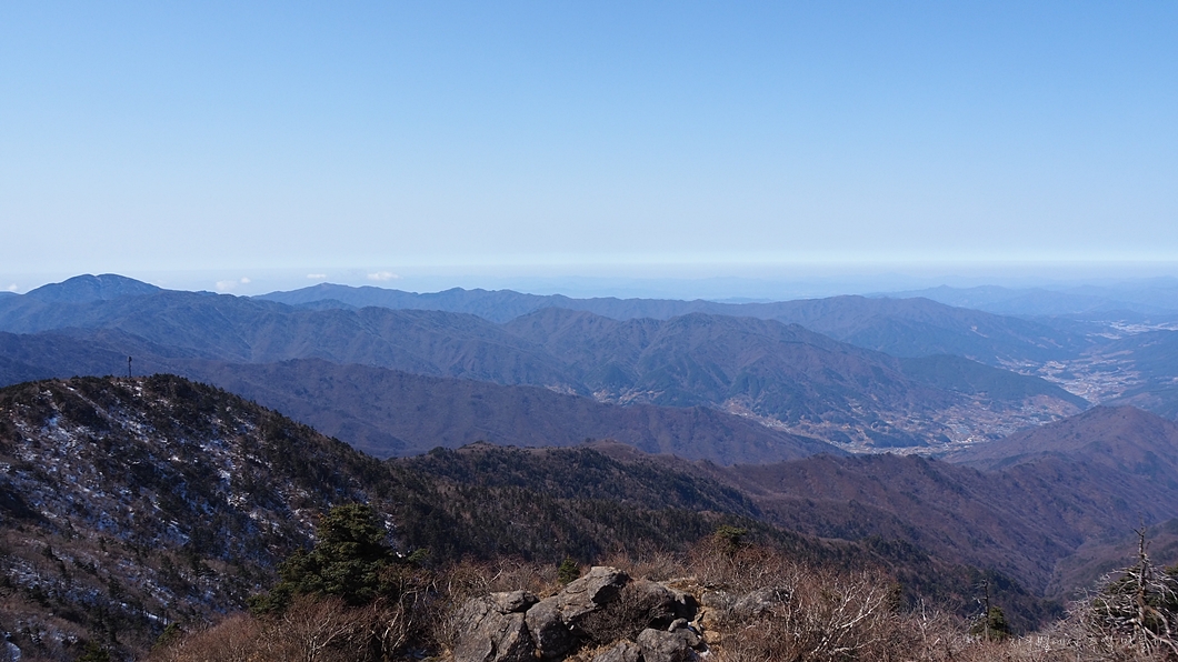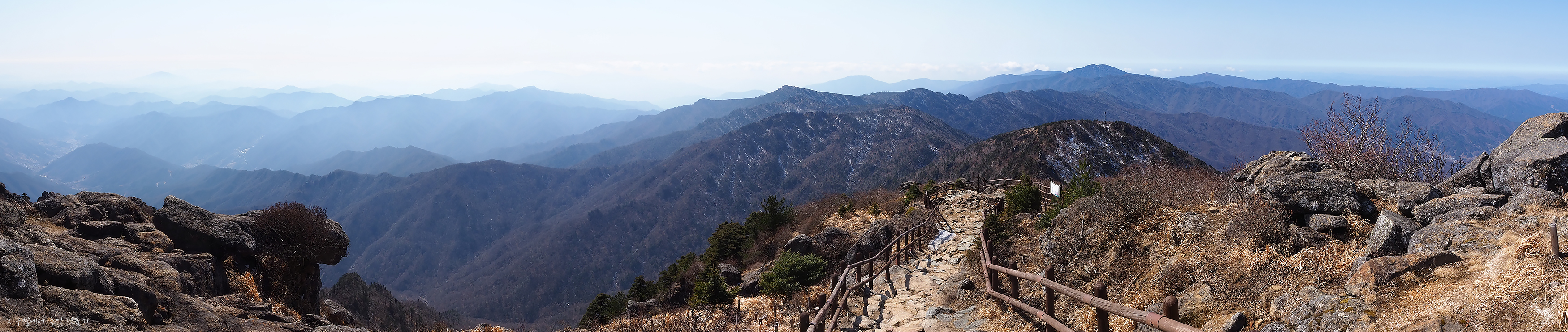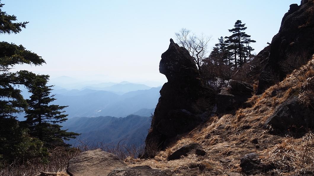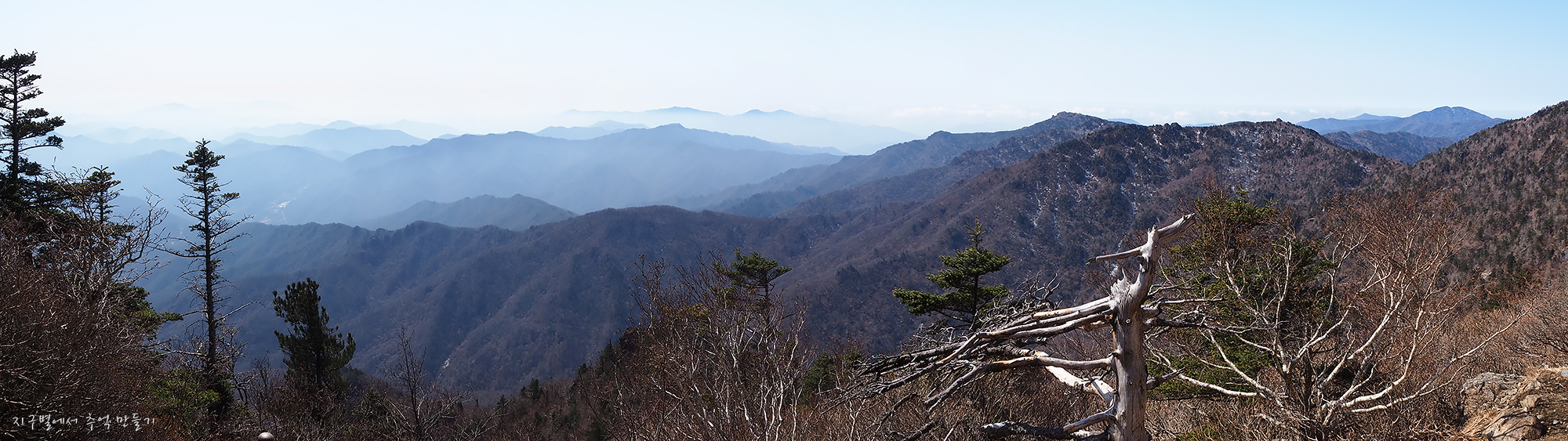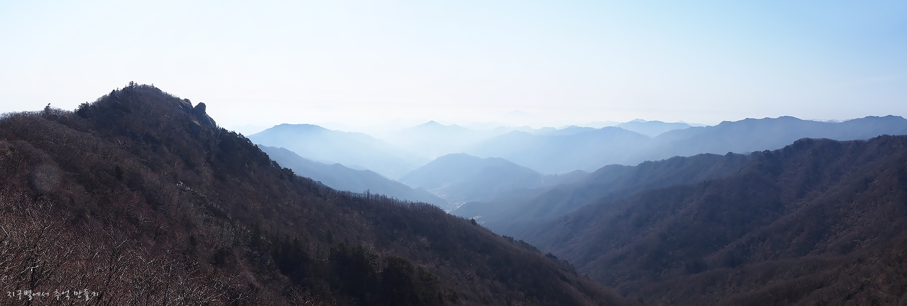 좌측 덕유능선은 잘 보이는데 미세먼지층이 약간 두터워 남쪽 방향은 조금 흐릿합니다.