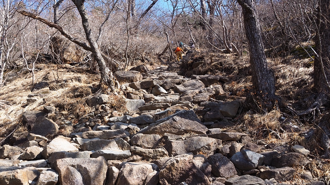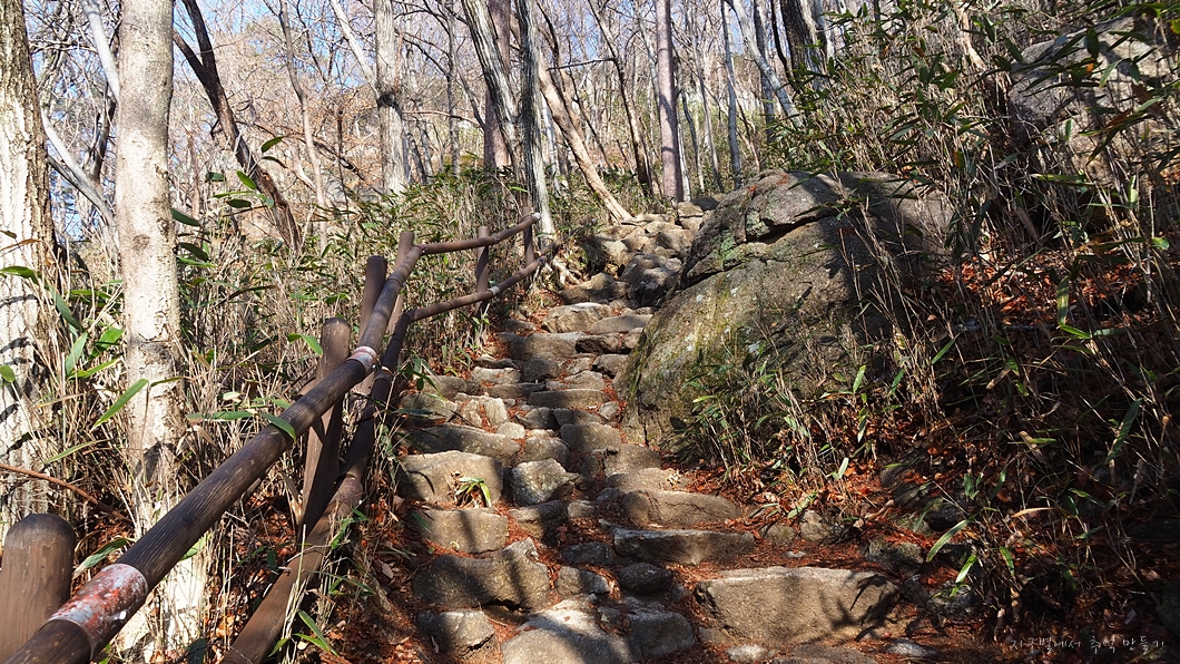 칼바위 지나고 출렁다리 삼거리부터는 본격적인 오르막 구간입니다.