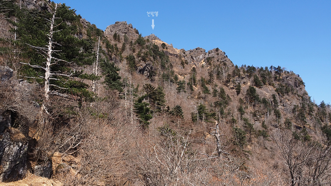 위로 천왕봉 정상이 올려다보이구요.