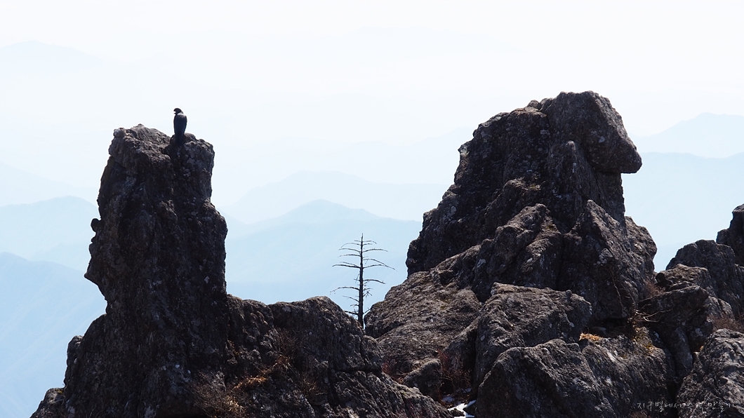 천왕봉 까마귀는 거의 사람들과 동고동락..