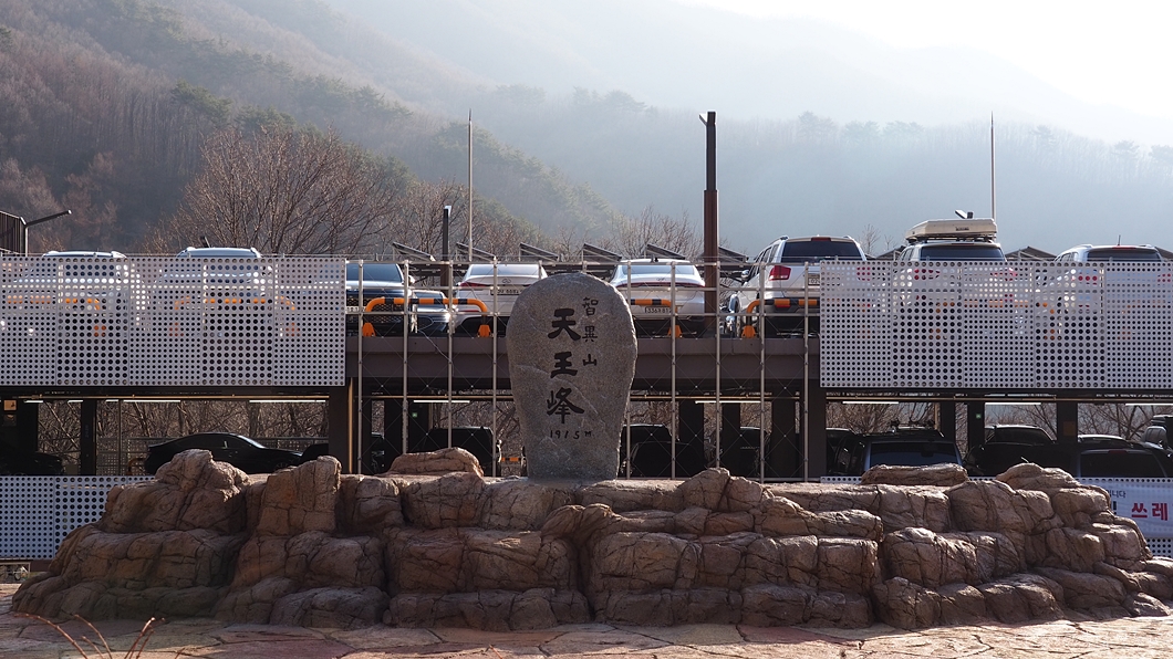 주차장 앞에 모형 정상석이 세워져 있습니다.