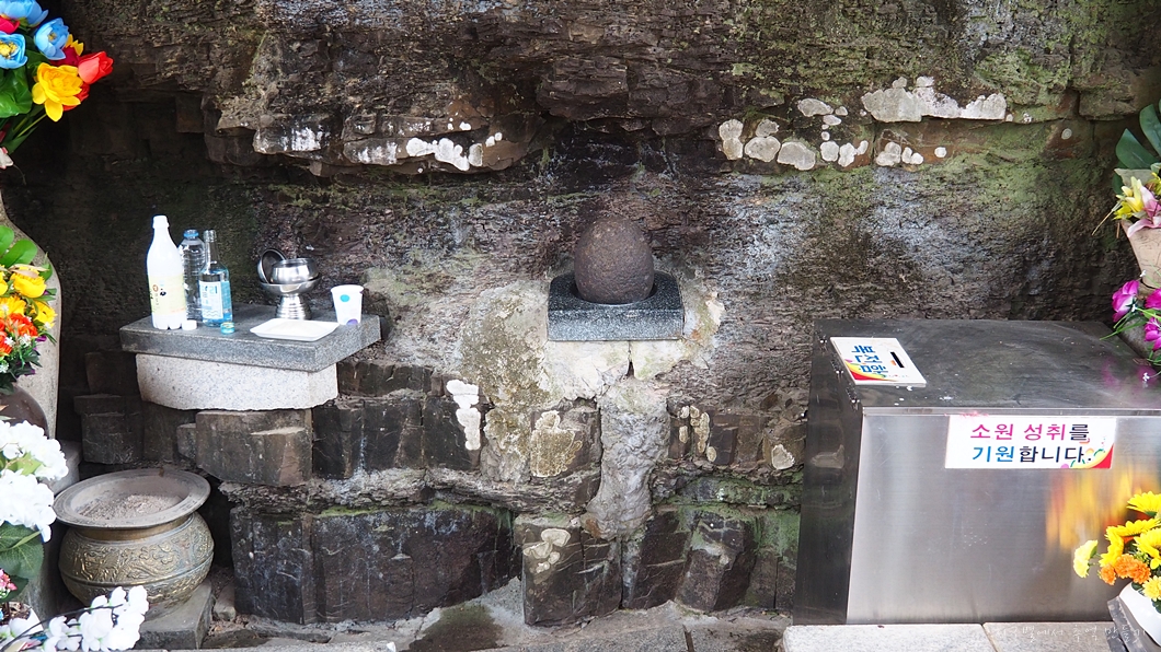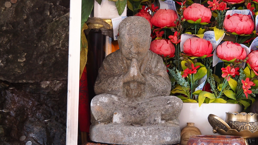 돌할매 앞에서 삼배 해야져, 그냥 돌을 들어 봐야져.. 다시 관등성명 밝히고 소원 빌고 복전함에 지폐 넣어야 하고 그다음 정성껏 돌을 다시 들어야 하니..