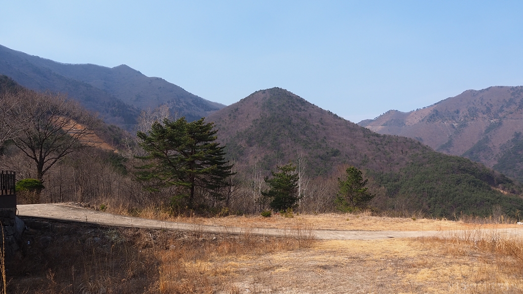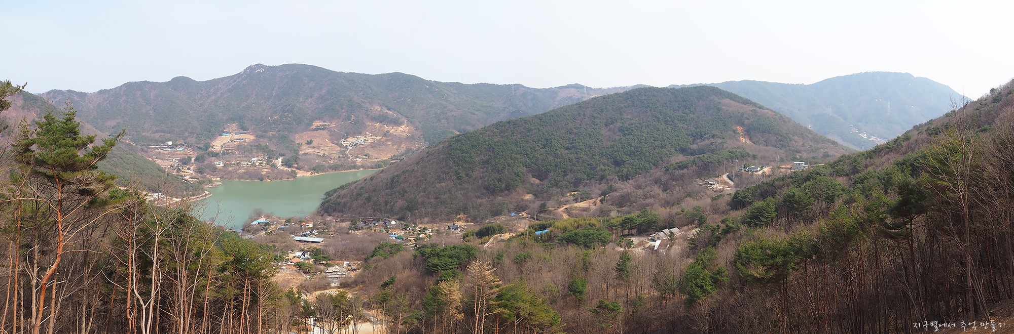 앞쪽 보이는 산이 석대산에서 수리봉으로 이어지는 능선.