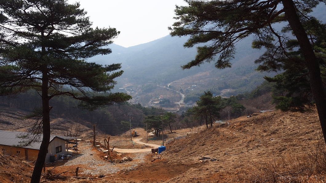 좌측 중간 뒤로 멀리 보이는 마을이 종점인 운리마을.