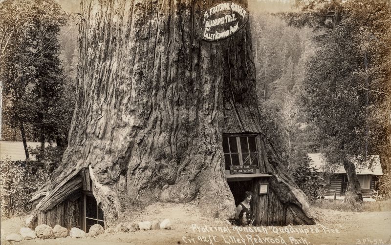 그 시절 관광객이나 나무를 자르는 벌목꾼, 그리고 지역 주민들은 거대한 나무줄기를 배경으로 인증샷을 많이 찍었는데 이러한 사진들은 손길이 닿지 않은 야생의 경이로움을 찬양하는 동시에, 역설적으로 당시 급속도로 확산되던 벌목과 개발의 모습을 보여주고 있습니다.