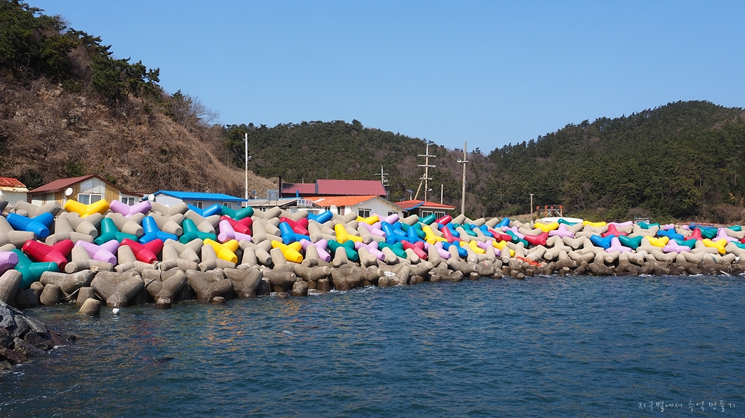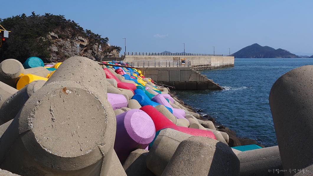 방파제 테트라포트가 예쁘게 색칠이 되어 있습니다.