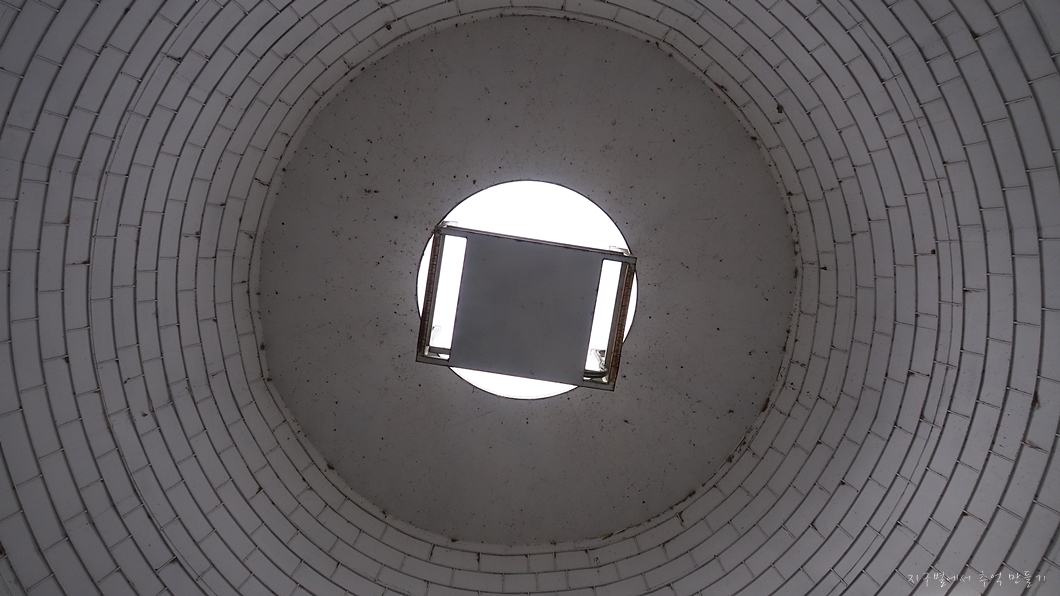 계단을 타고 위로 올라가니 위층 전망대가 있고 천정은 요런 형태로 뚫려 있습니다.