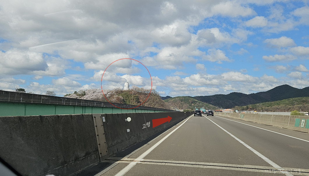 대구에서 광주방향 고속도로를 타고 낙동강 다리를 건너가면 건너편 좌측 산 위에 대포알이 하나 보입니다.