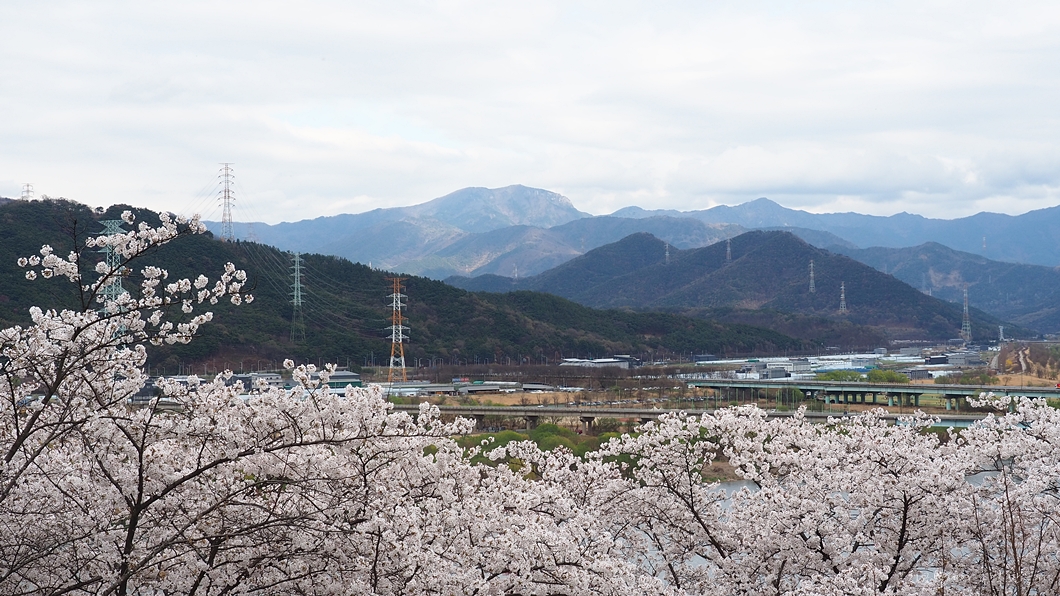 벚꽃 사이로 낙동강이 내려다보이네요.