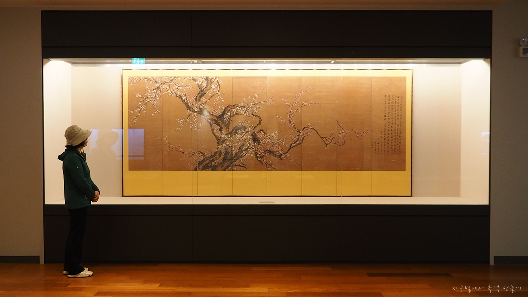 조희룡의 명작 홍백매화도가 있길래 깊은 감상을 해 보려고 가까이서 보니 작은 글씨로 이 작품의 진품은 중앙박물관에 있고 이건 모작이네요.