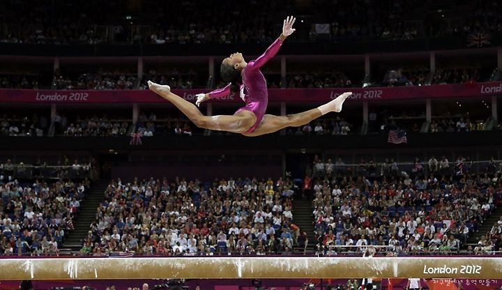 U.S. gymnast Gabrielle Douglas performs on the balance beam during the artistic gymnastics women's individual all-around competition at the 2012 London Summer Olympics, on Thursday, August 2, 2012.