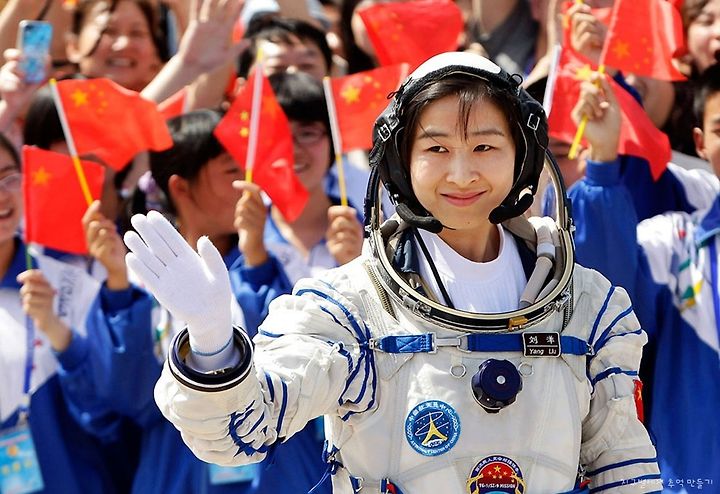 Liu Yang, China's first female astronaut, waves during a departure ceremony at Jiuquan Satellite Launch Center, Gansu province, on June 16, 2012. China sent its first woman taikonaut into outer space, prompting a surge of national pride as the rising power takes its latest step towards putting a space station in orbit within the decade. Liu, a 33-year-old fighter pilot, joined two other taikonauts aboard the Shenzhou 9 spacecraft when it lifted off from a remote Gobi Desert launch site.