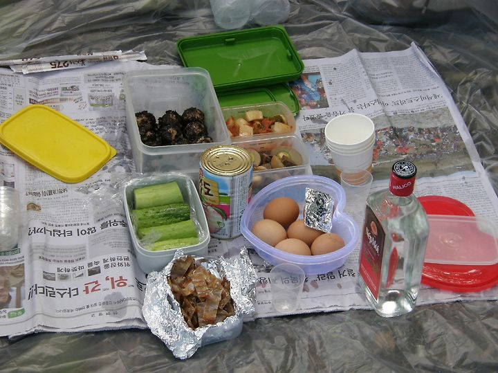 자~ 이제 맛난 점심입니다. 주먹김밥과 장조림 그리고 백도 샤베트....