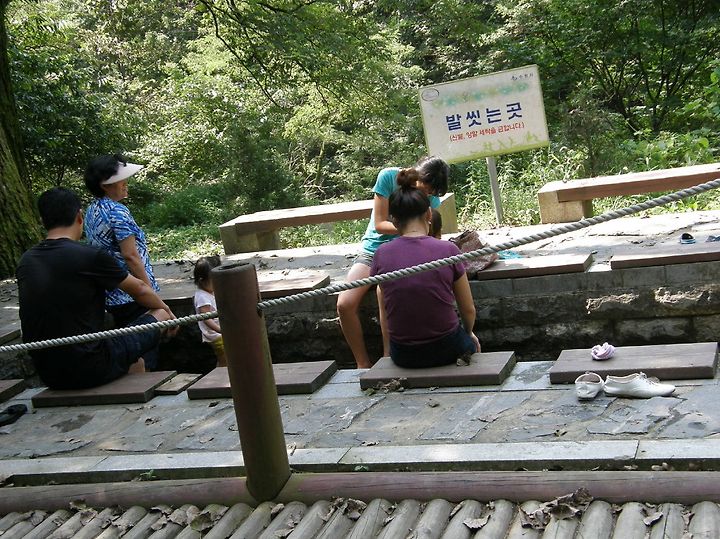 이곳부터는 수원시에서 관리하나봅니다. 발씻는곳에서 한가족이 여유로운 한때를 보내고 있습니다.