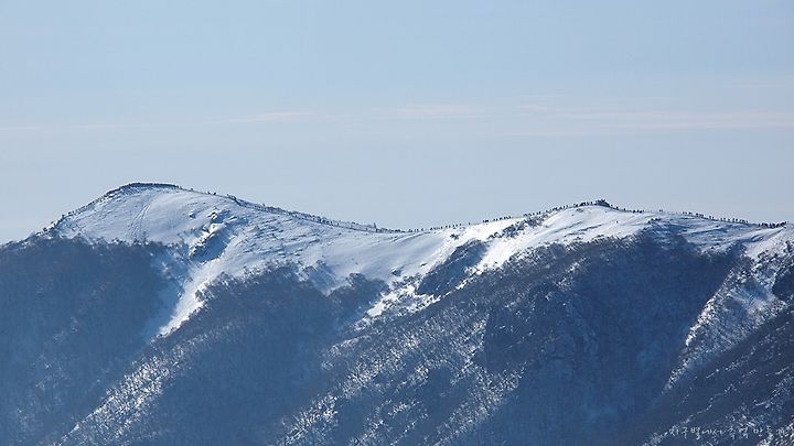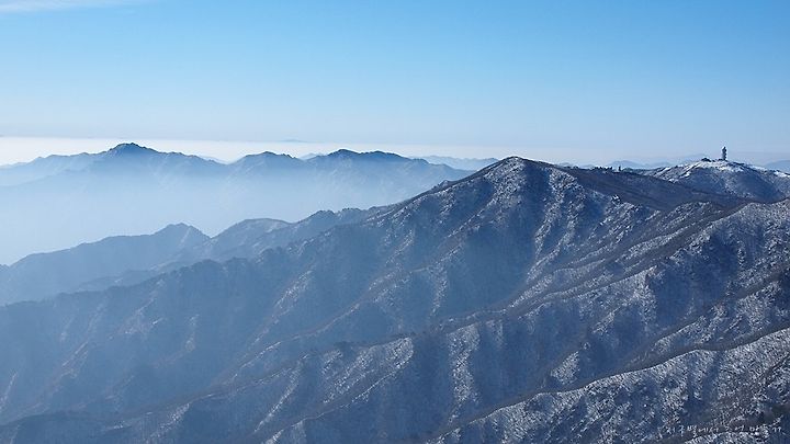올 겨울, 시작도 되기전부터 장기예보로 엄청나게 추울 것이라고 요란을 떨더니 잠시 몇 날 춥다고 느껴지는 날 제외하고는 연일 포근하고 건조한 날씨가 이어지더니 집 인근에 몇 일 전 개나리가 피고 철 장사를 놓친 다운제품들은 벌써 몇 일 전부터 시즌오프.... 에고 내 이럴 줄 알았습니다. 한 겨울에 소백산 비로봉에 올라 바람 한점 없고 춥지도 않는 이 황당한 기분... 뭔가 떨떠름하고 잘 못 찾아 온듯한 묘한 느낌으로 산행을 하였지만 다행히 조망이 그런대로 좋아 먼 곳 구름평선과 함께 실룩거리며 솟아 오른 높고 낮은 봉우리들을 감탄사 연발로 쳐다 보며 나름 분(?)을 삭였다는 것입니다.