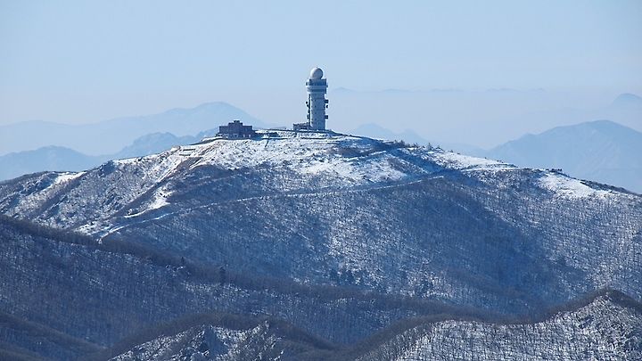 멀리 보이는 건물은 제2연화봉에 설치되어 있는 KT송신소