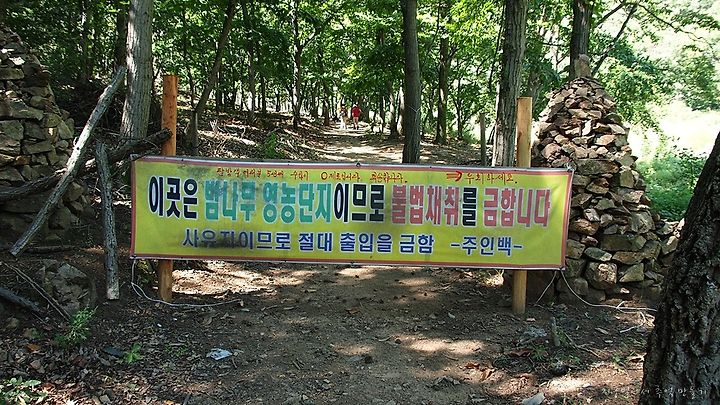 '이곳은 밤나무 영농단지이므로 불법채취를 금합니다.'