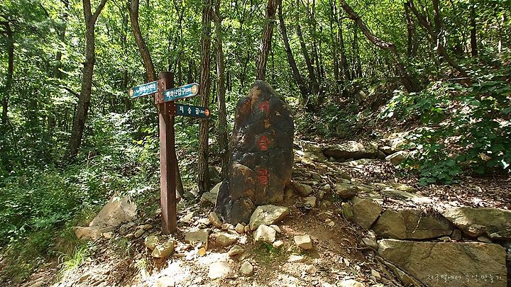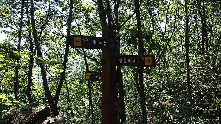 백옥정에서 능선길(임천석대 방향)로 약 1분 정도 진행을 하면 우측으로 내리막길이 나타나는데 이곳으로 내려가면 됩니다.