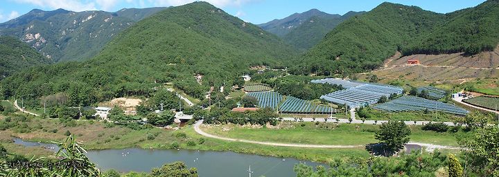 아래 사진은 지난 번 백화산 ~ 주행봉 산행시 내려다 본 구수천 계곡의 풍경입니다.