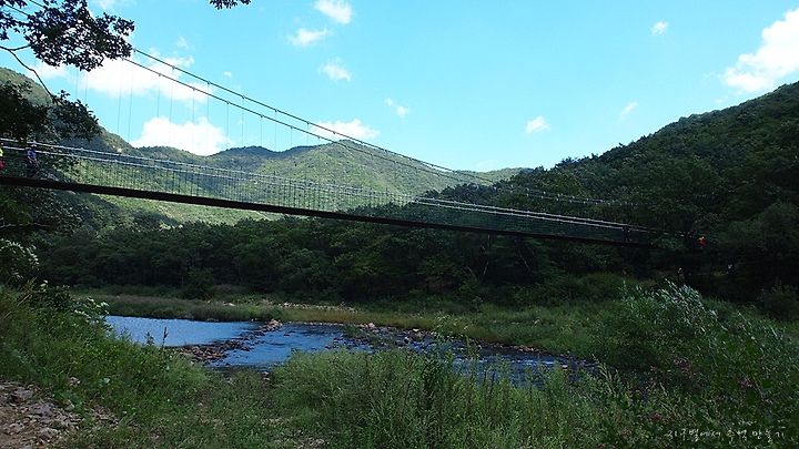 근데 요즘은 이런 출렁다리가 아주 튼튼하게 만들어 신나기는 하지만 그리 위험하지는 않은데 아주 오래 전 우리 시골의 출렁다리는 그렇지 못했습니다.