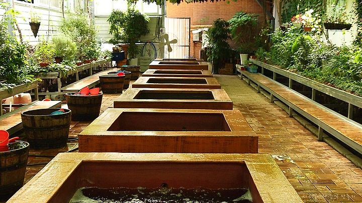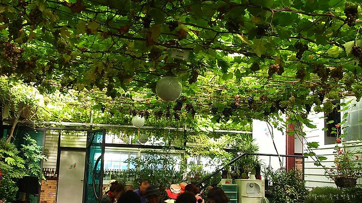 족욕탕 위에는 포도가 잔뜩 달려 있구요.