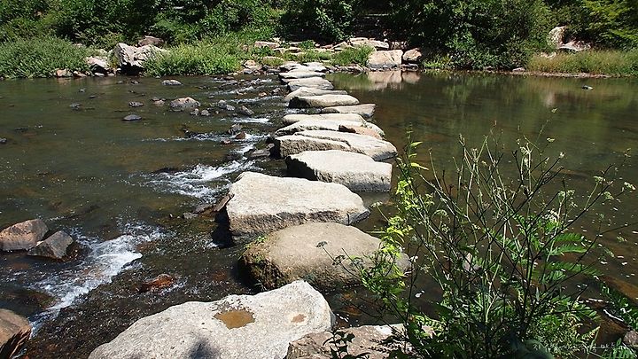 인위적으로 만든 징검다리인데 아주 거대한 돌을 운반한 현대인의 잔재주가 놀랍습니다.