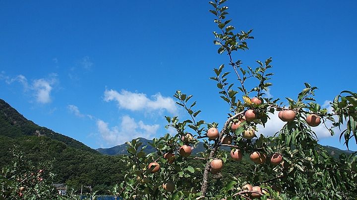 사과나무 뒤로 백화산 정상이 보여 집니다.
