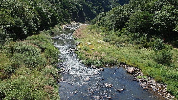 이곳 구수천의 냇물은 어디 산골에서 본 계곡물처럼 맑디맑은 물은 아니지만 하늘빛이 내려앉은 풍경은 나름 멋진 운치를 자아내고 있습니다.