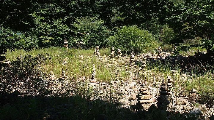 반야사로 건너가기 전의 돌 무더기