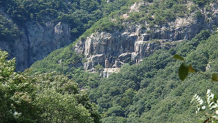 반야사에서 주차장으로 내려 오면서 치어다 보이는 백화산 정상 풍경