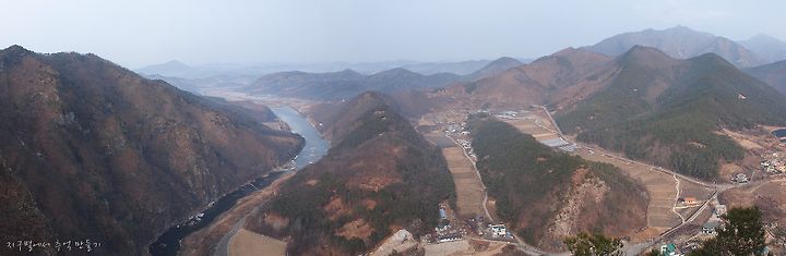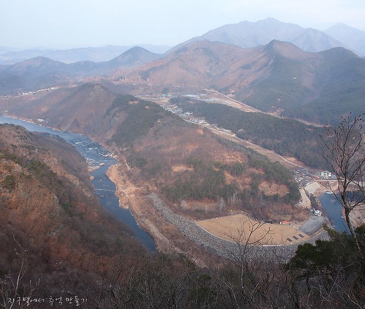 2~5봉까지 연결되는 능선 풍경입니다. 그 옆으로 초강천이 흐르고 그리고 한반도 지형입니다.