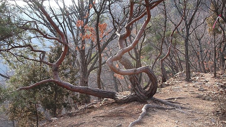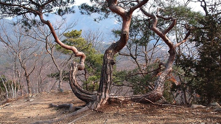 하산길에는 뫼산(山)자의 상형문자 소나무도 만나고..