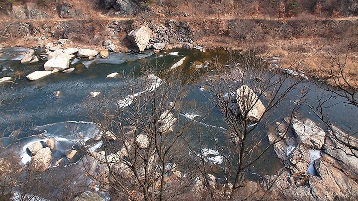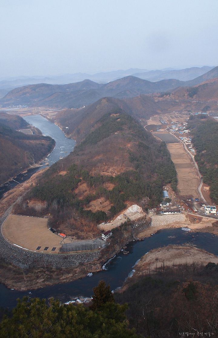 강쪽으로는 깎아지른 절벽길이라 내려다보면 정신이 혼미할 정도로 아찔하지만 다섯 봉우리를 넘나들며 거니는 기분은 구름 위처럼 두둥실합니다. 1봉과 2봉에서는 한반도와 가장 유사한 지형을 감상 할 수 있는데 백두대간의 지맥이 뚜렷하여 감탄스럽습니다.