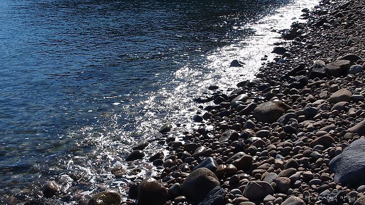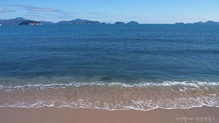 왼편은 모래사장으로, 오른편은 몽돌로 된 해수욕장입니다.